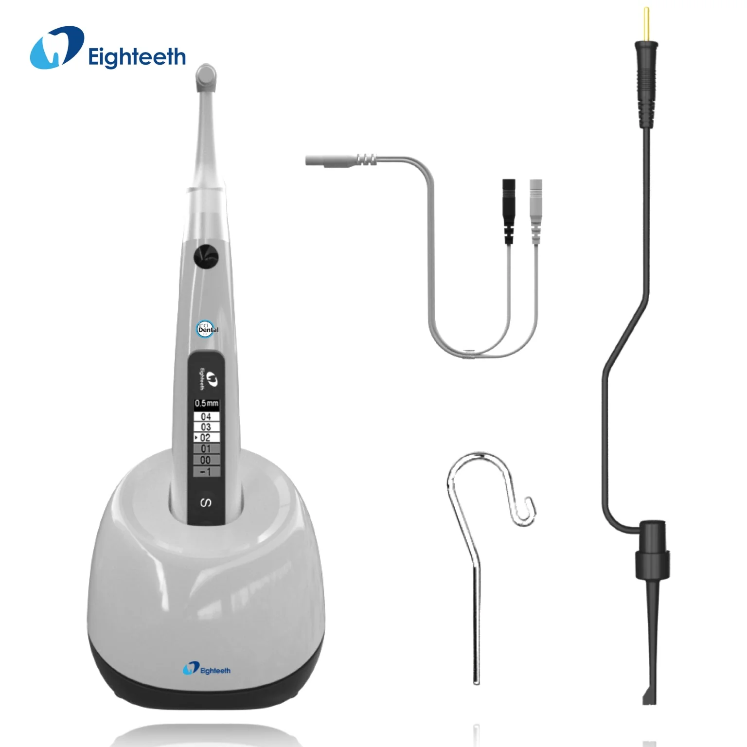 قابلیت استفاده بهصورت یکپارچه (Integrated mode) یا بهعنوان اپکسیاب مستقل، یعنی میتوانید کابل اندازهگیری را وصل کنید و از دستگاه صرفاً برای تعیین طول استفاده کنید. در مد یکپارچه، موتور هنگام رسیدن فایل به طول تعیینشده واکنش مناسب (مثلاً توقف یا معکوس) دارد؛ این رفتار باعث کاهش خطر تجاوز به آپکس و آسیب به بافت پریآپیکال میشود. دقت اپکسیابهای Eighteeth در منابع فنی و دفترچهها بهعنوان معیار قابل قبول گزارش شده است، البته همواره توصیه میشود قبل از اتکا کامل، یک cross-check رادیوگرافیک یا سنجش ثانویه انجام شود.