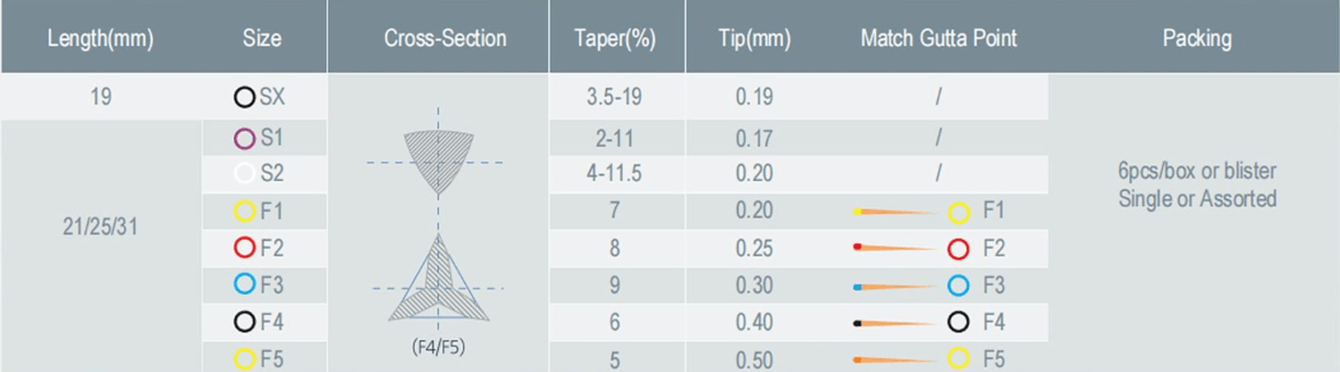 استفاده از این فایلها برای اندودنتیستها به دلیل مقاومت بالا، انعطافپذیری و قابلیت حذف دبریها، بسیار راحت و ایمن است. همچنین، طولهای استاندارد آن شامل 21 میلیمتر، 25 میلیمتر و 31 میلیمتر هستند که امکان انتخاب مناسبترین طول برای هر کانال را فراهم میکنند.