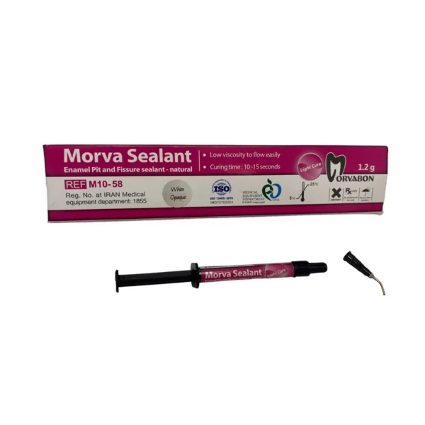 فیشور سیلانت مروابن یک رزین نوری است که برای پوشش شیارها و فیشورهای دندانهای خلفی بهمنظور پیشگیری از پوسیدگی استفاده میشود. این محصول در دو رنگ سفید و صورتی عرضه میشود که هر دو فرمولاسیون یکسانی دارند و فقط رنگ آنها متفاوت است. مروا سیلانت در سرنگ 1.2 گرمی عرضه میشود و با نور قابل سخت شدن است. این سیلانت با فرمولاسیون کم ویسکوزیته خود، بهخوبی در شیارهای عمیق نفوذ میکند و سیل کاملی ایجاد میکند.